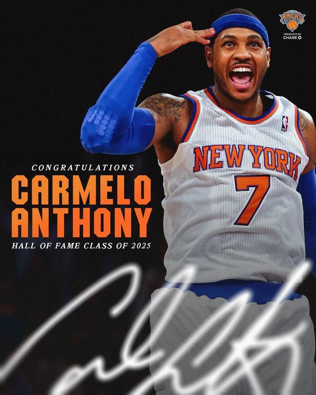 尼克斯官方更新多条社媒,来祝贺安东尼入选名人堂。尼克斯官方表示:你是纽约的骄傲;这个周末是梦想成真的周末;祝贺你入选篮球名人堂。
